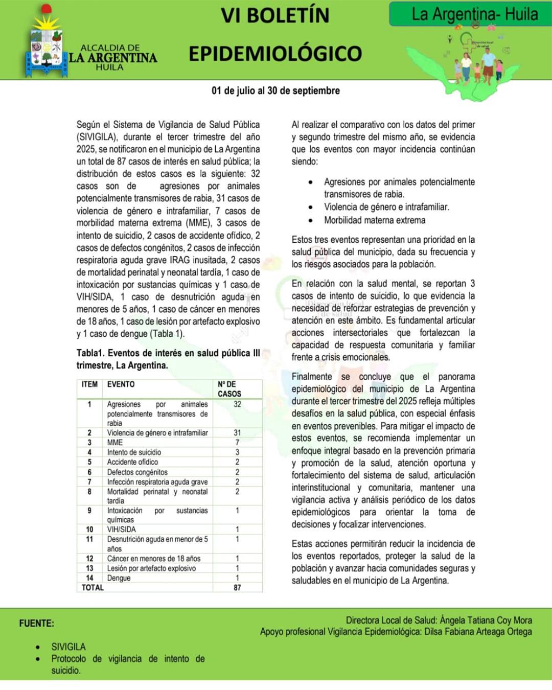 VI Boletín epidemiológico La Argentina